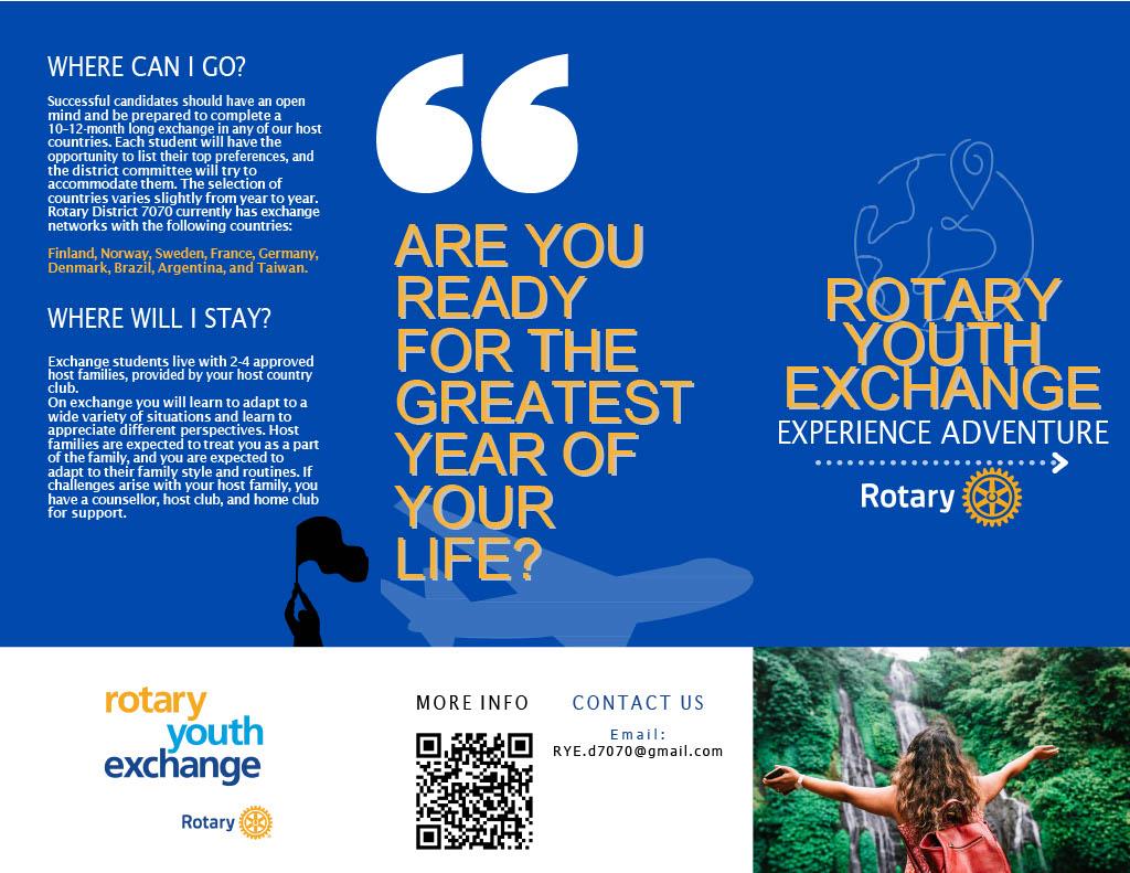 We hope this message finds you well and thriving in your service to our communities! As we continue to inspire and empower the next generation, we are excited to share an incredible opportunity that aligns perfectly with your Rotary values - the Rotary Youth Exchange program.